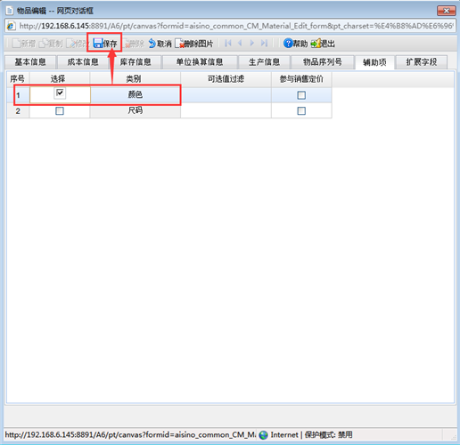 【菜单路径】功能导航/系统/公用数据/物品信息/物品辅助项设置
