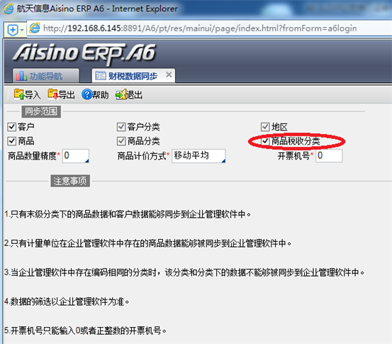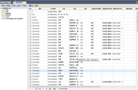 在系统-公用数据-物品信息下增加了菜单‘商品税收分类’,界面如下图:
