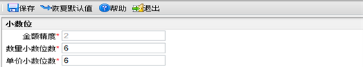 - 系统默认金额精度为2位,数量小数位数为6位,单价小数位数为6位。