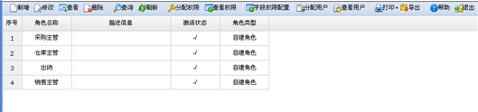 删除 | 删除一个未被使用过的角色,已分配用户的角色删除时,系统会给出相关的提示,确定后仍可删除。 | 该角色未保存过任何操作称为未被使用过。 |