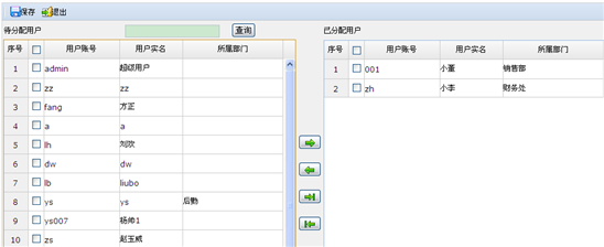 【第四步】将对数据有使用权限的用户移至“已分配用户”,保存退出。