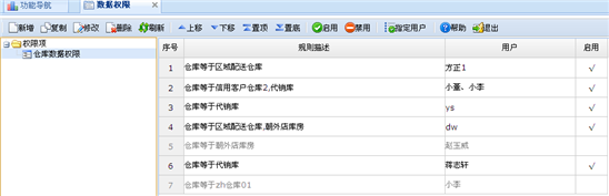 - 权限的规则,同一用户,由上到下顺序,取第一条可用规则。如无规则,则不对数据权限进行控制。