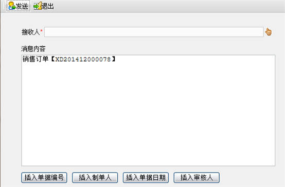 2 在消息内容栏中,录入要发送的单据消息内容。