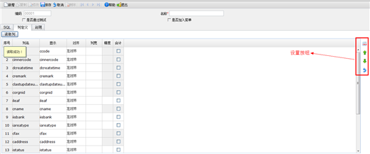 【第三步】点击“读取列”按钮查看SQL语句的的查询字段,并可以修改显示名称,精度和是否合计列等,也可以通过设置按钮调整字段的顺序。