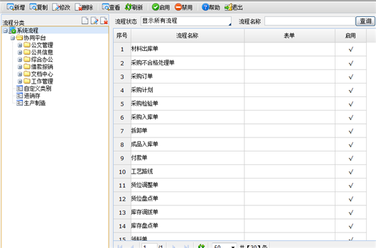 系统流程模板左侧为流程分类树形结构,右侧为模板列表,如下图所示。
