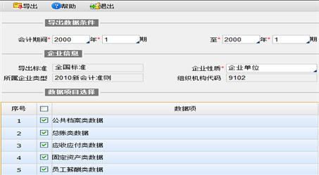 功能:从系统导出公共档案、总账、应收应付、固定资产、员工薪酬数据信息。