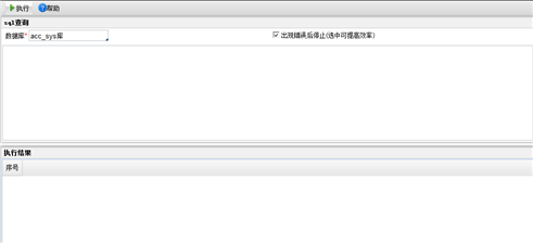 【第一步】打开数据数据库SQL执行工具界面,在数据库下拉框,选择“acc_sys库”或当前登录账套的“账套库”。