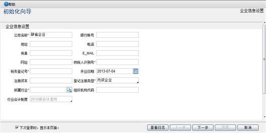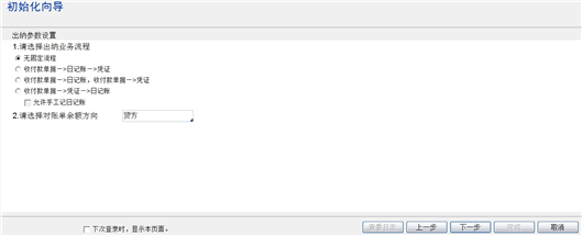 - 下次登录时,显示本页面,勾选该参数,下次登录系统仍弹出初始化窗口;不勾选该参数,下次登录时不再显示该窗口。