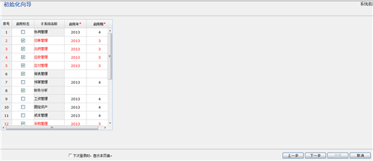 【第二步】设置系统启用子系统,如下图所示,勾选要启用的子系统启用标志,点击“下一步”按钮。