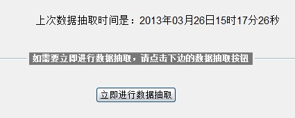 点击〖立即进行数据抽取〗按钮,抽取最新数据,抽取成功后弹出“数据抽取成功”提示框,点击〖确定〗按钮后更新上次数据抽取时间。