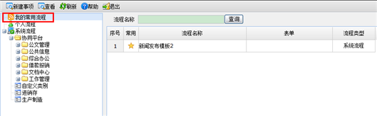 后,流程模板将不再显示在“我的常用流程”列表中显示。