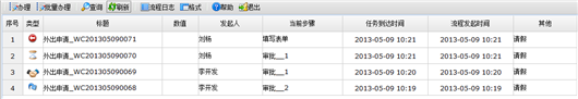 - 办理:选择一条记录,点办理,弹出流程审批界面。