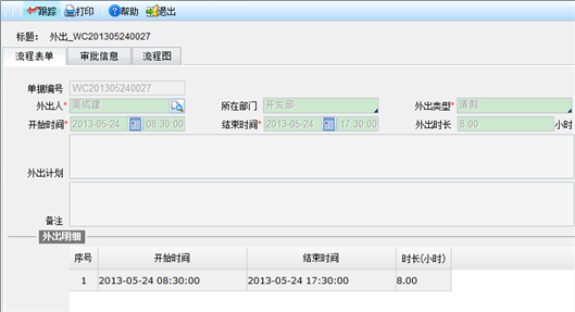 第二种:流程发起人查看流程状态是进行中的流程事项,可以补充正文和补充意见(发起人保存提交单据后,还可以补充正文和意见)跟踪、打印。