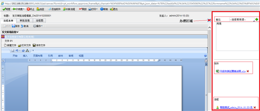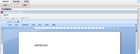 显示单据的内容。流程审批人或填写人在流程模版中分配了操作权限时,可以对单据进行除审批以外的操作(如支出、修改等)。