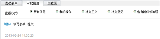 流程信息默认记录操作步骤,操作人,操作时间和所执行的操作。