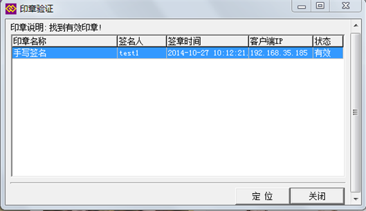 - 【签章验证】:具有签章验证权限的人,可以通过此页面查看当前文档中加盖的签章是否是系统保存的合法签章。如果签章有效,签章状态将显示为“有效”;如果签章不是系统管理签章,状态将显示“无效”。
