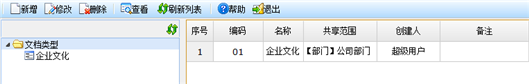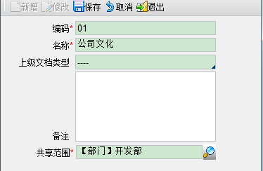 功能导航/协同管理/文档中心/文档管理,点【文档类型】进入文档类型编辑界面。