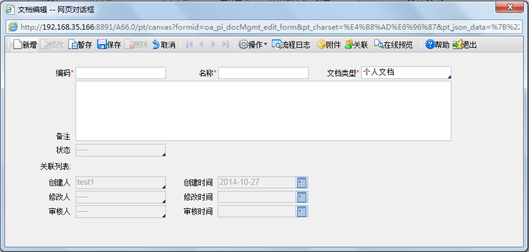 功能导航/协同管理/文档中心/文档管理,点【新增】进入文档编辑界面。