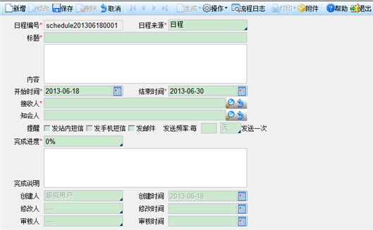 接收人 | 日程编辑保存审核后,发给接收人。 |