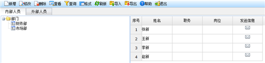 - 在内部人员页签内,选中姓名,点发送信息,可以给此用户发信息