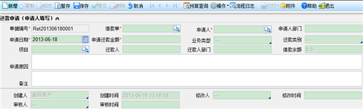 还款类别 | 选中借款单后,带出该借款单的借款类别,不可修改。 |