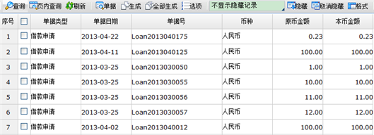 - 查询隐藏记录:查询条件中选中〖显示隐藏记录〗,将隐藏的单据显示出来(以灰色字体显示)。