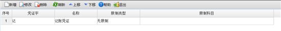 使用多个凭证字时,选中凭证字,点击〖上移〗或〖下移〗按钮,可以改变凭证字在列表中的排序。在凭证查询以及明细账中,同一期间不同凭证字的凭证将按照列表中凭证字的顺序进行排序显示。
