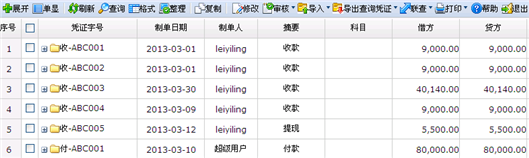 主要功能:对凭证进行审核,系统提供审核、批量审核、全部审核三种审核方式。