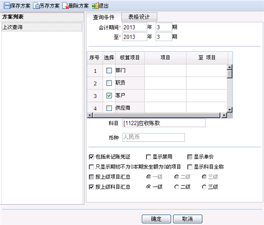 【第三步】设置好条件后,点击〖确定〗按钮,系统生成符合条件的核算项目汇总表,如下图所示: