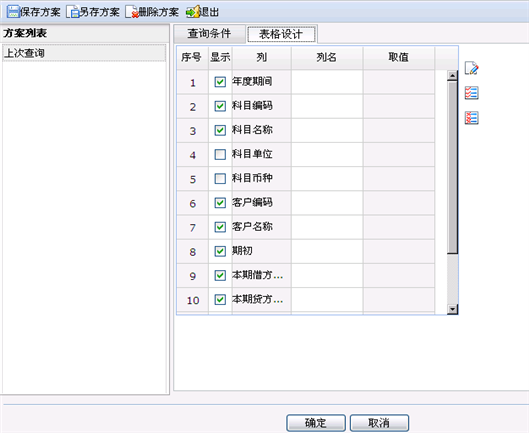 【第二步】在表格设计页面,可根据需要设置要显示列及显示列的名称。