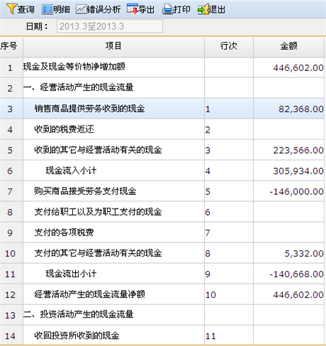 4.3.3 现金流量查询分析表