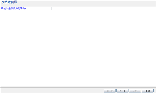 【第二步】输入操作员密码(若没有设置密码则可不输入)后,点击〖下一步〗按钮,进入反结账向导第二步,点击〖完成〗按钮则取消结账,如下图所示:
