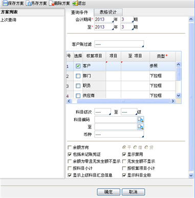 - 核算项目:选择所需查询的具体客户代码或范围。