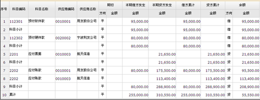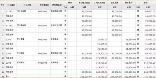 - 显示上级科目汇总信息:勾选此项则查询结果显示上级科目供应商往来总账信息。