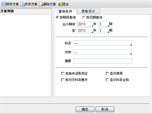 - 会计期间:可输入查询的起止会计期间,也可按日期进行查询。