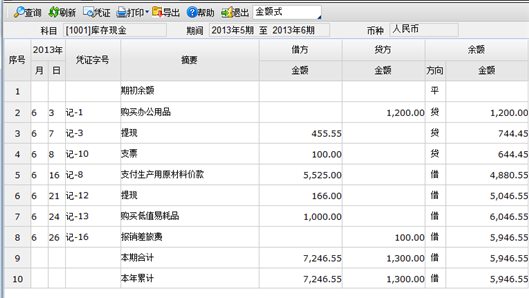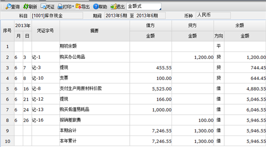 5.3.1 现金日记账
