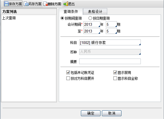 图5-1 银行日记账查询设置页面