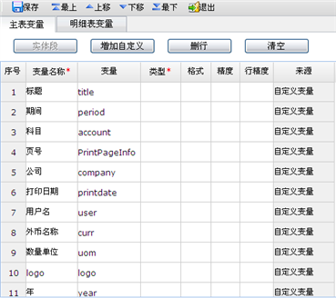 - 变量维护:维护单据打印可以设置的打印变量。