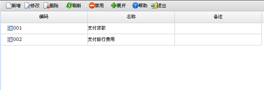 【主要功能】设置支票的用途,主要用于支票领用时选择支票而做的预置数据。支票用途设置页面如下图所示。