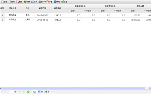 1. 在该页面,可通过〖新增〗〖修改〗按钮进入现金日记账期初维护页面,通过〖删除〗按钮将现金日记账期初余额删除。