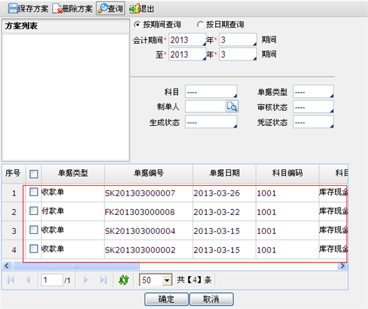- 生成状态:选择单据是否已经生成日记账的情况。系统提供“已生成”“未生成” “全部”选项。已生成的单据只可查看,不能重复生成。