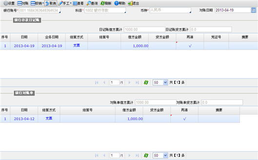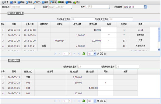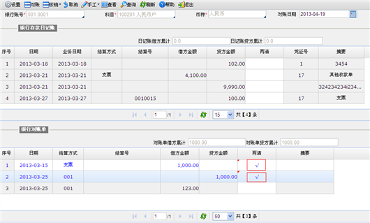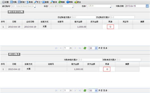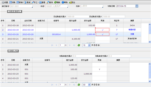 系统提供日记账核销和对账单核销两种核销方式,是用来处理银行存款日记账和银行对账单的内部核销业务。