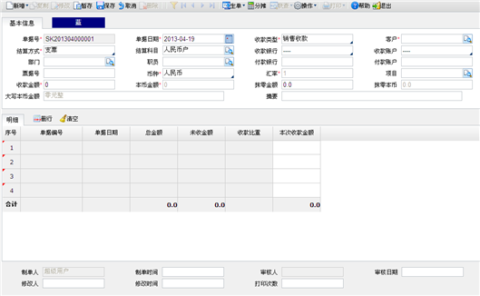 - 收款单新增后保存完毕,系统将自动对其审核。。
