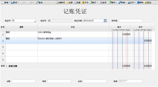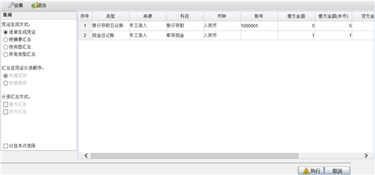 - 点击〖执行〗按钮,进入凭证制作页面,如下图所示。