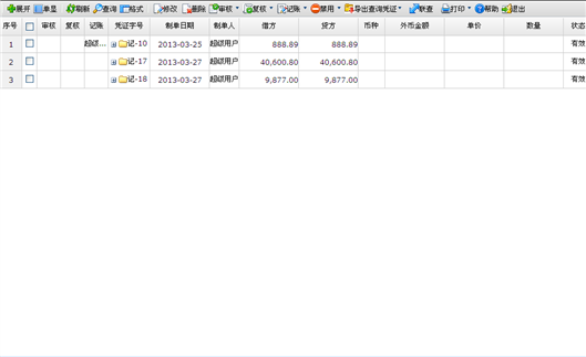 - 查询条件设置完成后,点击〖查询〗按钮,进入凭证列表页面,如下图所示。
