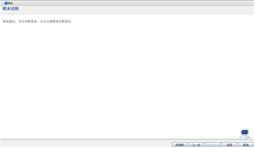 - 点击〖完成〗按钮,系统弹出结账成功提示。点击〖确定〗按钮,完成期末结账。
