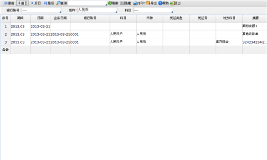 财务/出纳管理/账表查询/银行日记账