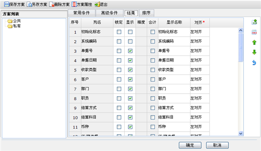 为了使用户更加直观的看到自己想要的项目和数据,可以设置数据项是否显示及精度等。也即列表格式设置功能。以收款单为例,查询页面如下图所示。