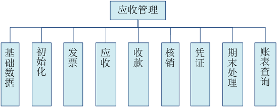 应收管理的主要功能有:基础数据、初始化、日常业务、期末处理、账表查询。