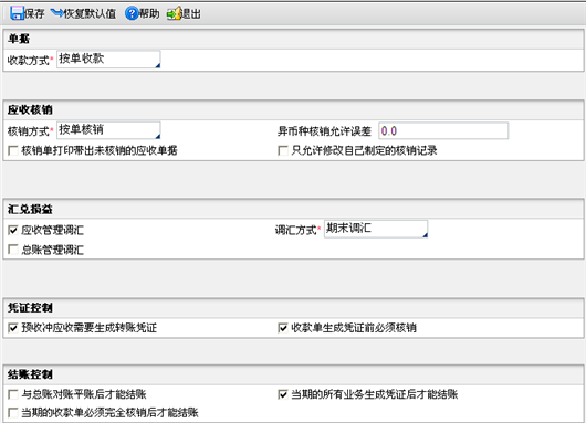 总账管理调汇 | 若勾选,则说明是在总账管理里面做汇兑损益,应收的汇兑损益功能不可用。 |
